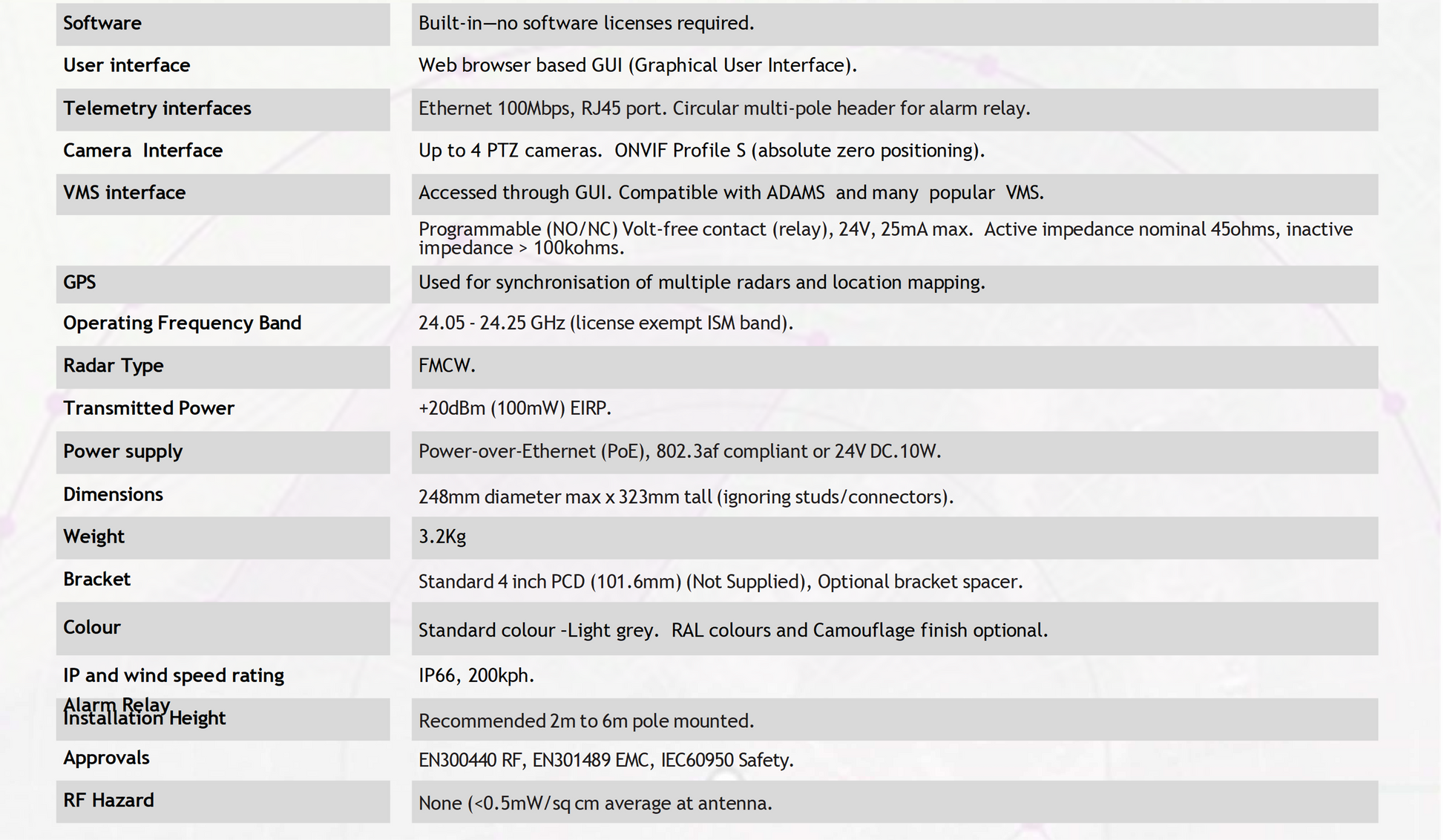EN300440 RF, EN301489 EMC, IEC60950 Safety.